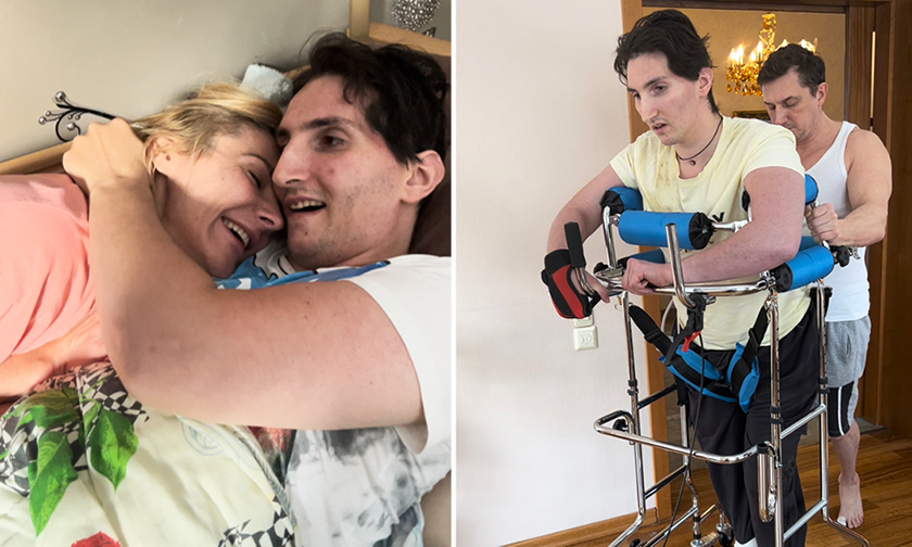 За недавно случился настоящий прорыв — Гоша начал пользоваться расческой и электробритвой, подниматься с кровати и пересаживаться в коляску со страховкой, ходить с опорой на высокие ходунки. Рабочей левой рукой Гоша поправляет на себе майку, поворачивает козырек бейсболки, может взять пальцами мелкие ягоды и донести их до рта, что говорит о восстановившейся мелкой моторике.