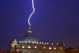 12 февраля. ПРАВМИР. Вечером 11 февраля, спустя несколько часов после заявления Папы Римского Бенедикта XVI об уходе на покой над Римом разразилась гроза и в купол ватиканской базилики св. Петра ударила молния, сообщает Седмица.RU.