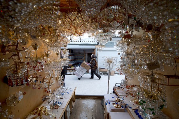 Апофеоз жизни здесь по воскресеньям, на Хрустальном рынке. Вазы, бокалы, фужеры, люстры, хрустальные зверюшки. Мы покупаем хрустальные конфетницы, хрустальную люстру для мамы и хрустального лося. У него ломается ножка. По периметру ходят мужики и продают разносортицу с рук. Большая часть товара без заводских упаковок. Удивляемся, думаем, что воруют или получают зарплату стеклом. Позже рассказывают, что мастера приспособились открывать мастерские дома. В сенях или сарае во дворе. Я пытаюсь представить, как это — выдувать хрусталь дома, в сенках.