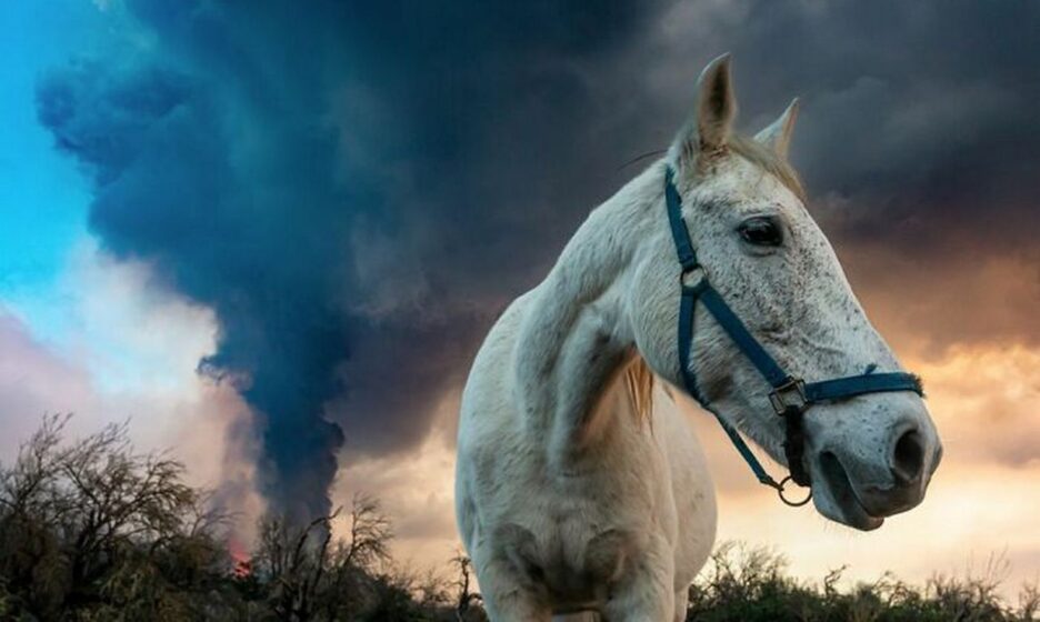 То же извержение вулкана. Брошенная лошадь ищет еду в эвакуированной деревне. Фото: Матьяж Кривич, Словения.