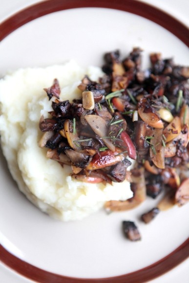 Если добавить к яблокам и грибам розмарин, то еда запахнет шишками и еловым лесом! В компании с грибами я обычно варю картошку, делаю пюре с оливковым маслом и миндальным молоком, но гарнир можно сделать любой.