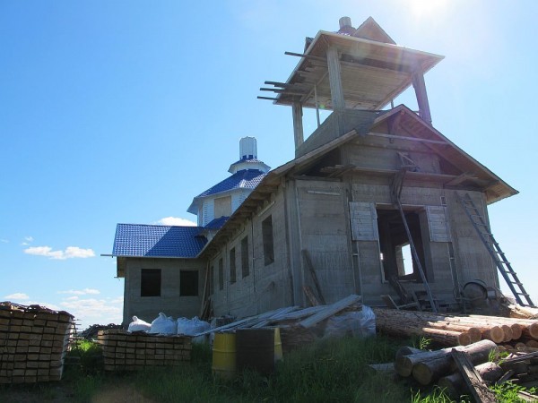 Когда-то на Княжестрове был большой деревянный храм. Сегодня он строится заново: ярко-синяя крыша уже видна издалека, но, как говорит матушка Надежда, сделана примерно треть необходимого.