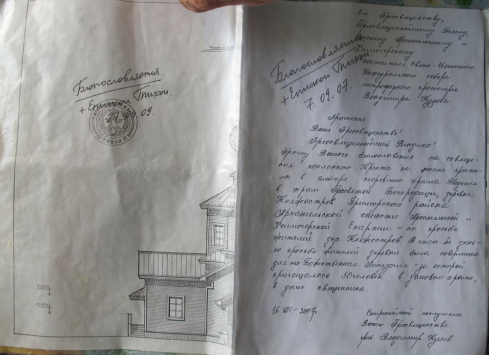 Почему так близко – понятно: поодаль не построишь, если не на пригорке – смоет половодьем или снесет льдиной во время ледохода. А вот почему не помог начатой стройке? «Не договорились». Может, хотел большей прозрачности отношений с правящим архиереем, может быть, еще почему-либо. Но невольно вспоминается анекдот про двух евреев на необитаемом острове, построивших три синагоги, а в епархии шутят, что на Княжестрове будет самая большая в России плотность храмов на душу населения: два на десять домов. Если, конечно, и бизнесмен, и бабушка свои проекты завершат.