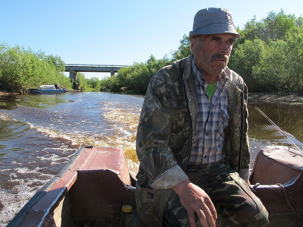 Катер к Архангельску когда-то ходил, да сломался, и когда снова пойдет – неизвестно. Зимой реку переходят легко, а сейчас на берегу стоит табличка со словом «переправа» и номером мобильного телефона. Нас везет лодочник-молчун Николай. Местные считают, что он берет освежающе дорого (200 рублей с человека), но вариантов нет.
