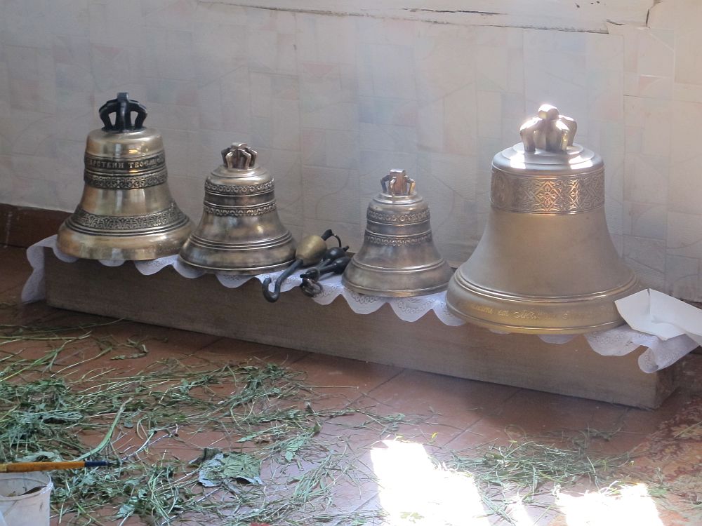 От сгоревшего храма сохранился один колокол-подголосок. Исходя из его звонкого голоса, по нотам подобрали и остальные колокола для будущей звонницы: они сейчас хранятся в домовом храме в молитвенном доме. На месте сгоревшего алтаря нашли и еще один маленький колокол – без языка, но сделали ему новый. Звучит, правда, глухо.