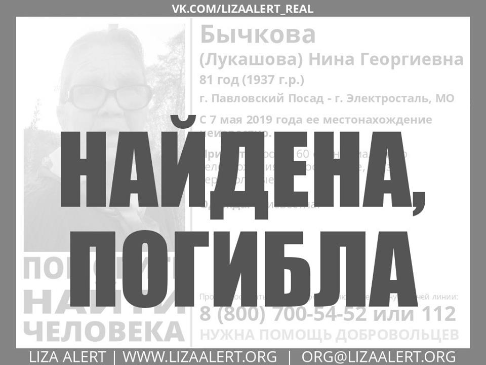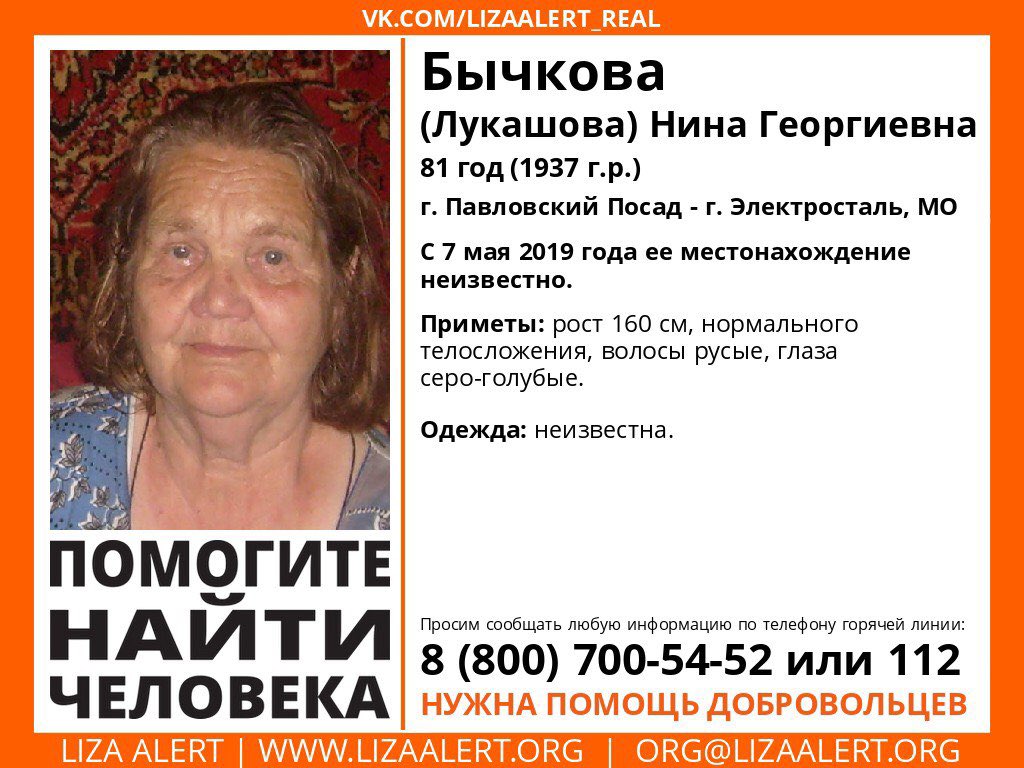 Сначала это была вполне стандартная для поиска ситуация: в Павловском Посаде пропала женщина 81 года, которая жила одна. Отсутствие матери обнаружил сын Константин, который 9 мая приехал ее навестить. Он подумал, что она ушла по делам, приехал на следующий день. Не найдя маму, он поехал по павлово-посадским больницам, чтобы найти ее. Все обошел, везде ответ – «нет и не было». 11 мая Константин отправился в отделение полиции и написал заявление на розыск, а также обратился в «Лиза Алерт».