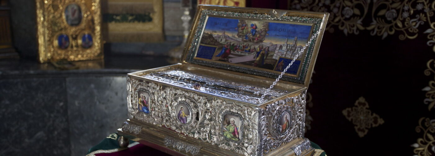 Пояс Пресвятой Девы Марии, который в наши дни разделен на три части, – единственная сохранившаяся реликвия ее земной жизни. Согласно Преданию, пояс был соткан из верблюжьей шерсти самой Девой, и после Успения при Вознесении она отдала его апостолу Фоме.