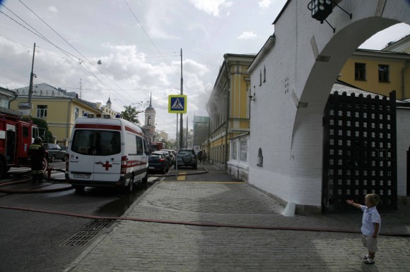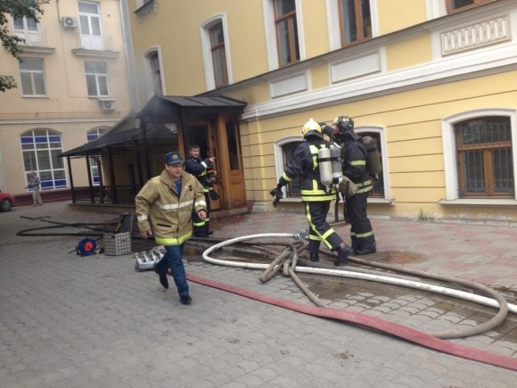 Минут через десять приехали пожарные и вскоре вся Большая Ордынка оказалась заставленной спецмашинами. К зданию было невозможно подойти — черного дыму было столько, что стеклопакеты на окнах скрипели от напряжения, и мы были уверены, что внутри произошел какой-то взрыв, а, может, несколько взрывов. Пожарные разбили двери, и оттуда полыхнул огонь. Еще они разбили несколько окон.