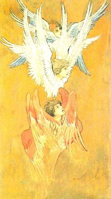 Серафимы. Эскиз росписи Владимирского собора в Киеве. В.М. Васнецов. Фактически, вопрос о существовании нечеловеческого разума решен положительно еще в Библии: наш мир населен не только homo sapiens, но и бесплотными, духовными существами и ангелами, часть из которых отпала от Бога, а часть осталась Ему верна.