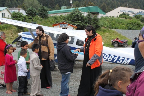 На одном из них мы добрались на алеутский остров посреди океана, куда люди прилетают нечасто. Наверное, поэтому приезд двух священников из России для местных оказался большим событием. Собрались все жители острова, многие приехали на квадроциклах, маленьких девочек нарядили в праздничные платья, волосы некоторых ребят пестрили всеми цветами радуги. Мы сошли с трапа, и жители острова начали приветствовать нас традиционным троекратным поцелуем в щеку. Их было больше ста человек, и процесс целования затянулся надолго.