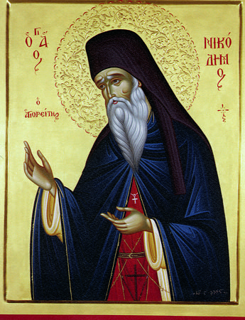 Преподобный Никодим Святогорец, в крещении Николай, родился в 1748 году на греческом острове Наксосе. В возрасте 26 лет он пришел на Святую Гору Афон и там, в монастыре Дионисиат, принял постриг с именем Никодим.