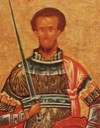 Темницею и гладом изнуряемь,/ даже до смерти верен пребыл еси, блаженне Ермогене,/ малодушие от сердец людей твоих отгоняя/ и на общий подвиг вся призывая./ Темже и нечестивых мятеж низложил еси и страну нашу утвердил еси,/ да вси зовем ти:// радуйся, заступниче Российския земли.