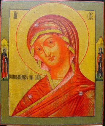 Относительно времени и места явления Огневидной иконы Божией Матери никаких сведений не сохранилось. Пресвятая Богородица на этой иконе изображена одна, без Младенца Иисуса. Лик Ее обращен в правую сторону. Одежда на Пресвятой Деве красного цвета, и это послужило поводом к наименованию иконы Огневидной.