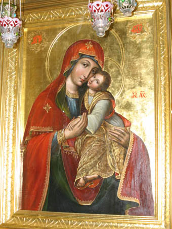 12 августа 1880 года икона была перенесена в возвращенный монастырю Свято-Троицкий храм и помещена в деревянный резной киот у его левой передней колонны.
