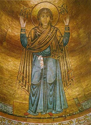 Чудотворная икона Пресвятой Богородицы «Нерушимая Стена» выполнена в стиле мозаики на стене над горним местом главного алтаря киевского Софийского собора. Божия Матерь изображена на золотом фоне, стоящей во весь рост на четырехугольном золотом камне с воздетыми руками.