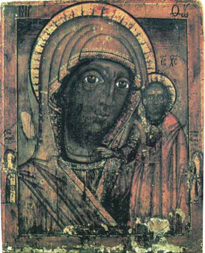 Большую черную «доску», вертикально плывущую против течения, увидели ребята, играющие на берегу. Вдруг «доска» встала как вкопанная, попав в водоворот, и дети увидели лицо Женщины. Испугавшись, они побежали за священником и взрослыми, которые благоговейно достали из воды икону и торжественно перенесли ее в сельский храм. Весть о чудесном явлении Казанской иконы Божией Матери быстро распространилась по всей округе и далеко за ее пределами. Множество паломников приходили на поклонение святому образу.
