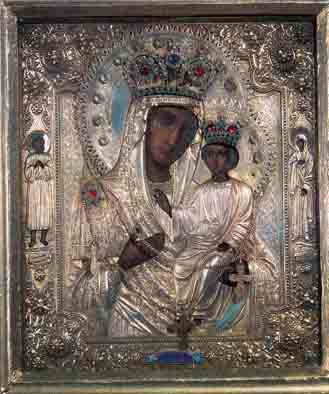Икона была написана по типу Казанской, помещена в позолоченную резную раму и украшена золоченной ризой с драгоценными камнями. Другая икона находилась в верхнем этаже того же храма, на столбе за левым клиросом.