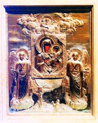 На священном месте воздвигли каменный храм в честь Успения Пресвятой Богородицы, алтарь которого находился на месте явления иконы «Одигитрия». Обе прославленные иконы были поставлены в нижнем ярусе иконостаса: «Одигитрия» – на правой стороне (придел в честь которой был устроен в 1770 году), а «Умиление» – на левой (придел устроен в 1776 году).