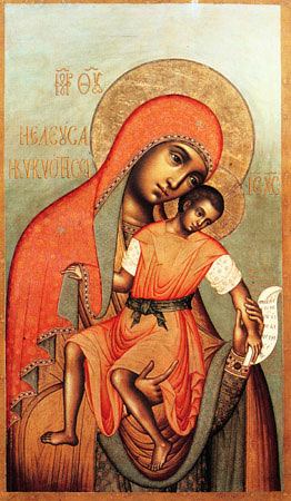 Икона Божией Матери, именуемая «Милостивая», (Киккская). Эта икона написана, по преданию, святым евангелистом Лукой. Название свое «Киккиотиса» она получила от горы Киккос, что на острове Кипр. Здесь она находится в императорской обители, в храме, построенном в ее честь. Прежде чем попасть на остров Кипр чудотворный образ Богородицы произволением Божиим долго странствовал: сначала находился в одной из первых христианских общин в Египте, затем был перевезен в Константинополь, где оставался до времени Алексия Комнина (конец ХI – начало ХII века). В эти годы старцу-отшельнику Исаии в чудном знамении было открыто, что его стараниями чудотворный образ, написанный евангелистом Лукой, будет пребывать на острове Кипр. Старец много трудов положил на выполнение Божественного откровения. Когда икона Богоматери прибыла на остров, от нее стали совершаться многие чудеса. Издревле и доныне в обитель Богоматери Милостивой со всех сторон стекаются одержимые всевозможными недугами и получают исцеление по вере своей. В чудодейственную силу святой иконы веруют не только христиане, но и иноверцы и прибегают к ней в бедах и болезнях. Неисчерпаема милость Пречистой Богородицы, Заступницы всех страждущих, и воистину присуще Ее образу имя «Милостивая». Чудотворная «Киккская» икона Богоматери имеет замечательную особенность: она, неизвестно с какого времени, закрыта до половины пеленою от верхнего левого угла до правого нижнего, так что ликов Богоматери и Божественного Младенца никто не может и не дерзает видеть. Изображение Богоматери на иконе являет собой тип Одигитрии, как и образ Смоленской иконы Матери Божией. Глава Богородицы увенчана короной. Ныне список с этой иконы особо чтим в женском Никольском монастыре г. Мукачева.