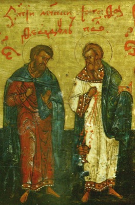 Святые мученики Агафопод диакон и Феодул чтец жили в Фессалониках в царствование императоров Диоклитиана (284–305) и Максимиана (284–305) и состояли в церковном причте: святой диакон Агафопод был глубоким старцем, а святой Феодул, чтец, был юн.