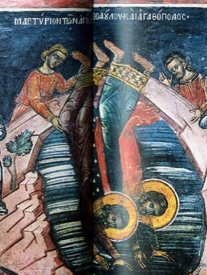 Море выбросило на берег тела мучеников в светлых одеждах, без камней и без веревок. Христиане взяли их святые тела и предали честному погребению.