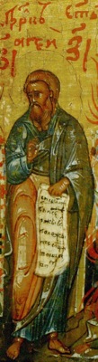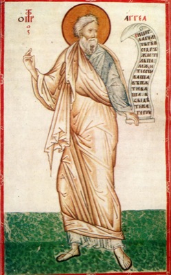 Святой пророк Аггей — десятый из 12 малых пророков. Он был из колена Левиина и пророчествовал при персидском царе Дарии Гистаспе (за 500 лет до Р. Х.). По возвращении иудеев из Вавилонского плена он убеждал народ достроить второй Иерусалимский храм и возвещал, что в этом храме надлежит «Слову Безначальному в последних временах явитися».