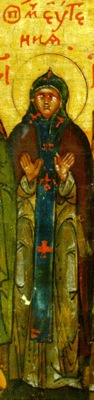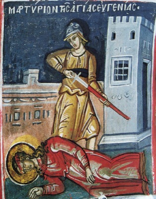 Преподобномученица Евгения, родом римлянка, жила в Александрии, куда ее отец, Филипп, был послан императором Коммодом (180–192) в качестве наместника Египта. Евгения получила прекрасное образование и отличалась добрым нравом и красотой. Многие знатные юноши добивались ее руки, но вступать в брак она не хотела.