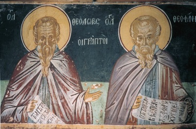 Преподобный Феодор исповедник и брат его исповедник Феофан Начертанные родились в Иерусалиме от родителей-христиан. Старшим был Феодор. Он с раннего детства избегал детских забав и любил посещать церковные службы. Вместе с младшим братом Феофаном (память 11 октября) он был отдан на обучение пресвитеру в Лавре святого Саввы. Оба брата приняли иночество; святой Феодор был возведен в сан пресвитера.