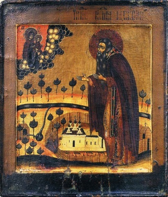 Преподобный Косма Яхромский был слугой одного боярина и во время продолжительной болезни своего господина утешал его чтением книг. Как-то, переезжая из города в город, они остановились на реке Яхроме. Здесь преподобному Косме явилась на дереве икона Успения Пресвятой Богородицы, от которой он слышал голос, повелевавший быть ему иноком и устроить монастырь. Его больной господин тогда же получил от иконы исцеление, а преподобный Косма отправился в Киев и в Печерском монастыре принял постриг.