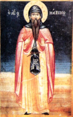 В семнадцатилетнем возрасте он оставил родительский дом, принял монашество и проходил послушание у лучшего духовного наставника Македонии – старца Марка. По кончине наставника преподобный подвизался под руководством нескольких пустынных отцов чрезвычайно строгой жизни. Прибыв в Константинополь, преподобный Максим постоянно находился при Влахернском храме Пресвятой Богородицы, как бы поселившись в притворе.
