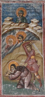 Дечани. Ок. 1350.Мчч. Павел, Павсирий, Феодотион. Фреска. Церковь Христа Пантократора. Дечани. Косово. Сербия. Около 1350 года. |