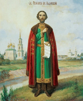 Святой благоверный князь Роман Олегович Рязанский был из рода князей, которые во время татарского ига прославились как защитники христианской веры и Отечества. Оба его деда умерли за Отчизну в битве с Батыем. Воспитанный в любви к святой вере (князь жил в слезах и молитвах) и своей Родине, князь всеми силами заботился о разоренных и угнетенных подданных, зашищал их от насилий и грабежей ханских баскаков (сборщиков податей). Баскаки возненавидели святого и оклеветали его перед татарским ханом Менгу-Тимуром. Роман Олегович был вызван в Орду, где хан Менгу-Тимур объявил, что он должен выбрать одно из двух: или мученическую смерть или татарскую веру. Благоверный князь отвечал, что христианин не может изменить истинную веру на ложную. За свою твердость в исповедании веры он был подвергнут жестоким истязаниям: ему отрезали язык, выкололи глаза, обрезали уши и губы, отсекли руки и ноги, содрали с головы кожу и, отрубив голову, насадили ее на копье. Это произошло в 1270 году.