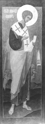 Святой Прохор вначале сопровождал первоверховного апостола Петра и от него поставлен епископом в город Никомидию. После Успения Божией Матери Прохор был спутником и сотрудником святого апостола Иоанна Богослова и вместе с ним сослан на остров Патмос. Там он записал Откровение Божие, бывшее святому апостолу Иоанну, о конечных судьбах мира (Апокалипсис). По возвращении в Никомидию святой Прохор обращал язычников ко Христу в городе Антиохии и там принял мученическую кончину.