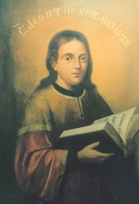 Преподобный Леонтий, канонарх Печерский, с юных лет поступил в Киево-Печерскую обитель, где принял постриг. Он обладал прекрасным голосом и, когда обучился грамоте, исполнял послушание канонарха. Преподобный Леонтий преставился молодым в ХIV веке и за самоотверженный подвиг спасения прославлен Господом благодатным даром чудотворений. Мощи святого подвижника находятся в Дальних пещерах, память его совершается также 28 августа, в Соборе Киево-Печерских святых.