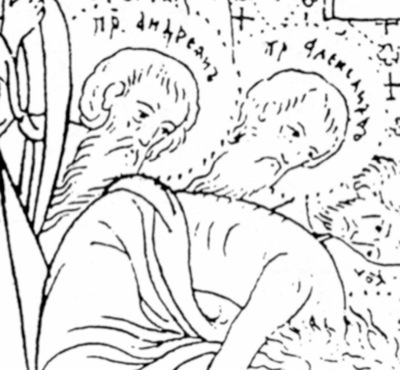 Россия. XVII.Собор Московских святых (фрагмент). Рисунок (перевод с иконы). Россия. 2-я пол. XVII века. Перевод с иконы выполнен В.П. Гурьяновым. |