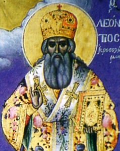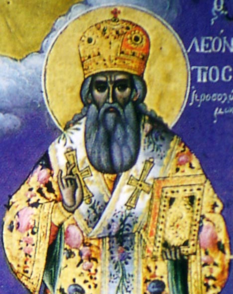 Святой Леонтий, Патриарх Иерусалимский, по свидетельству святого Григория Паламы, был Патриархом в 1223–1261 годах. Житие его подробно описано Феодором, монахом Константинопольским. Это житие было переведено с сокращением с греческого на русский язык. Вторично и более полно оно было переведено преподобным Никодимом Святогорцем, который указывает кончину Патриарха в 1175 году.