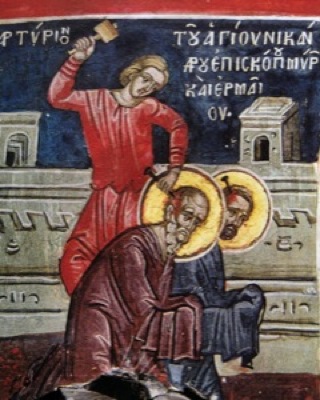 Святые священномученики Никандр, епископ Мирский, и Ермей пресвитер (I), ученики последователя и сподвижника первоверховного апостола Павла святого апостола Тита (память 25 августа), были рукоположены им в священный сан. Подвизаясь в неустанных пастырских трудах, святые многих язычников обратили ко Христу. За это они были схвачены и приведены на допрос к градоначальнику Ливанию. Ни уговоры, ни угрозы властей не склонили святых мучеников отречься от Христа. Тогда Ливаний приказал их пытать. Лютые, нечеловеческие муки вынесли святые: их, привязанных к коням, волокли по камням, тела их рвали железными крючьями, бросали в горящую печь. Господь помог им вынести то, что человек своими силами вынести не может. Под конец мучители пронзили головы и сердца святых гвоздями и, бросив их в яму, засыпали землей.