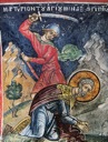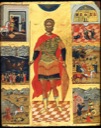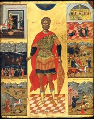 Святой великомученик Мина, родом египтянин, был воином и служил в городе Котуане под началом центуриона Фирмилиапа во время царствования императоров Диоклитиана и Максимиана (284–305). Когда соправители начали жесточайшее в истории гонение на христиан, святой не пожелал служить гонителям и, оставив службу, удалился в горы, где подвизался в посте и молитве. Однажды во время языческого праздника святой пришел в город, в котором раньше служил. В разгар праздничных игрищ, смотреть которые сошелся весь город, раздался обличающий голос угодника Божия, проповедовавшего веру во Христа, Спасителя мира. Перед судом правителя Пирра святой мужественно исповедал свою веру и сказал, что пришел сюда, чтобы обличить всех в злочестии. Святой Мина отверг предложение принести жертву языческим богам, принял жесточайшие муки, после которых был обезглавлен в 304 году. Тело святого мученика приказано было сжечь. Христиане ночью собрали в погасшем костре уцелевшие останки мученика, которые положили в храме его имени, построенном после прекращения гонений на месте страданий и кончины великомученика Мины.