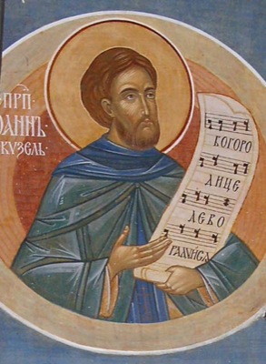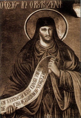 Преподобный Иоанн Кукузель, родом из Диррахии (Болгария) в детстве остался сиротой. Обладая очень красивым голосом, поступил в придворную Константинопольскую школу, где за свои дарования приобрел расположение императора Иоанна Комнена (1118–1143 гг.) и стал первым придворным певцом. Но прелести императорского двора томили боголюбивого юношу. Не желая оставаться среди довольств и роскоши, избегая вступления в брак, который готовился для него императором, юный Иоанн стал искать пути покинуть столицу и скрыться в отдаленной пустыни.