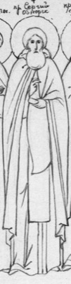 Преподобный Сергий Обнорский, Нуромский, Вологодский чудотворец, начал иноческие подвиги на Святой Горе Афон. Затем приехал в Россию и поселился в обители Живоначальной Троицы под руководством Преподобного Сергия Радонежского (память 5 июля и 25 сентября). Через несколько лет, по благословению Преподобного игумена, пошел преподобный Сергий в Вологодские леса и остановился на берегу реки Нурмы. Там он водрузил крест и построил часовню с келлией, в которой подвизался в глубоком безмолвии, «равноангельскую жизнь проводя», и терпеливо перенося искушения от бесов и недобрых людей.