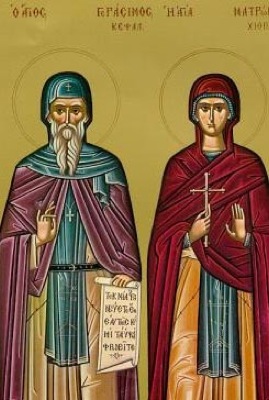 Преподобный Герасим родился в селении Трикала, находящемся в Пелопонесе. По достижении совершеннолетия он удалился на остров Закин для иноческой жизни. На Святой Горе принял схиму и учился у Афонских подвижников. Получив благословение у старцев, преподобный отправился в Иерусалим поклониться Живоносному Гробу Спасителя. Обойдя святые места и посетив Синайскую гору, Антиохию, Дамаск, Александрию, Египет, он возвратился в Иерусалим, где стал кандиловжигателем у Гроба Господня. Преподобный был рукоположен блаженным патриархом Иерусалимским Германом II (1534–1579) во диакона, а потом во пресвитера. Преподобный Герасим не ослабил своих молитвенных подвигов. Для безмолвия он удалялся на Иордан, где непрерывно постился 40 дней. Получив у патриарха благословение к безмолвной жизни, преподобный Герасим удалился в Закинф. Там он пробыл в уединении 5 лет, питаясь растениями. По внушению свыше преподобный Герасим перешел на остров Кефалонийский и в Омале, при восстановленной им церкви, устроил женский монастырь, в котором прожил 30 лет в постоянных трудах, бдении, молитве, коленопреклоненном простирании на земле. За свою высокую жизнь он удостоился от Бога дара чудес – исцелить болезни и изгонять нечистых духов. Преподобный Герасим, извещенный о своей кончине за несколько дней, благословил инокинь и мирно отошел к Господу 15 августа 1579 года, на 71-м году жизни. Когда через два года открыли гроб, его святые мощи, обретенные в нетлении, источали благоухание и были цельбоносны.