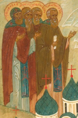 Преподобные Феофил и Иаков Омучские подвизались на острове Коневце вместе с преподобным Арсением (память 12 июня). В 1396 году на реке Омуче в Псковской епархии, недалеко от города Порхова, святые Феофил и Иаков основали пустынь в честь Успения Пресвятой Богородицы. Кончина их последовала около 1412 года.
