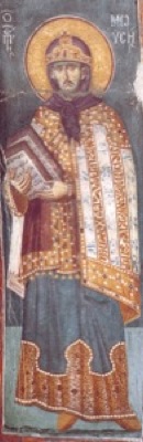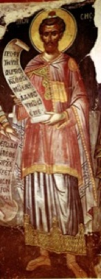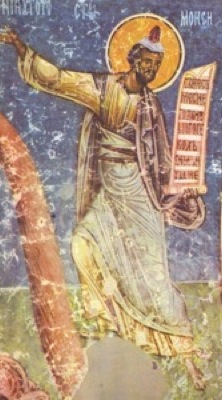 Прор. Моисей. Мануил Панселин. Фреска церкви Успения Богородицы в Протате. Афон. Начало XIV в.