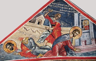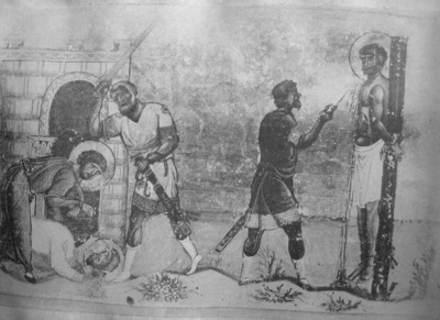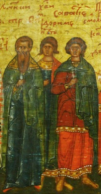 Святые мученики Трофим, Савватий и Доримедонт пострадали за Христа в царствование римского императора Проба (276–282). Однажды в городе Антиохии совершался языческий праздник: приносились жертвы, лилось вино, творилось бесчиние. Пришедшие в город христиане Трофим и Савватий, с горечью смотря на это шумное и непристойное торжество, молили Господа наставить заблудших на путь спасения. Их схватили и привели к правителю. На допросе святые твердо исповедали свою веру и на принуждения отречься от Христа отвечали решительным отказом. Во время жестоких пыток святой Савватий скончался, а святого Трофима отправили на еще более страшные мучения в город Синнад к правителю Фригии Дионисию, известному палачу и истязателю. Обутый в железные сапоги с острыми гвоздями, святой Трофим 3 дня шел пешком, подгоняемый конной стражей. Все способы пыток использовал искусный мучитель, чтобы сломить мужественного христианина – святой Трофим лишь повторял слова Писания: «Много скорбей у праведного, и от всех их избавит его Господь» (Пс. 33, 20). Страдальца бросили в темницу, где его стал посещать тайный христианин – сенатор Доримедонт. Он ухаживал за святым Трофимом, омывая и перевязывая его раны. Когда об этом стало известно мучителям, святого Доримедонта стали заставлять отречься от христианства, а потом вместе со святым Трофимом бросили на съедение зверям. Мученики остались нетронутыми. Тогда их усекли мечом.