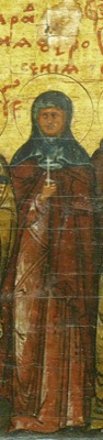 Преподобная Евфросиния родилась в начале V века в городе Александрии в семье знатных и богатых родителей и была единственным ребенком. Мать Евфросинии умерла рано. Воспитывал девочку отец, Пафнутий, который был глубоко верующим, благочестивым христианином. Он часто посещал монастырь, игумен которого был его духовным наставником. Когда Евфросинии исполнилось 18 лет, отец хотел выдать дочь замуж. Он направился в монастырь к своему наставнику, чтобы получить благословение на предстоящий брак дочери. Игумен беседовал с девицей и дал ей свое благословение, но святая Евфросиния стремилась к иноческой жизни. Приняв тайно пострижение от инока-странника, она покинула отчий дом и решила поступить в обитель, чтобы провести жизнь в уединении и молитве. Опасаясь, однако, что в женском монастыре ее обнаружит отец, она, назвав себя евнухом Измарагдом, пришла в тот самый мужской монастырь, который с детства посещала вместе с отцом. Иноки не узнали переодетую в мужское платье Евфросинию и приняли в свою обитель. В уединенной келлии в трудах, посте и молитве святая Евфросиния провела 38 лет и достигла высокого духовного совершенства. Ее отец скорбел о потере любимой дочери и не раз, по совету настоятеля, беседовал с иноком Измарагдом, открывая ему свою печаль, и находил у него духовное утешение. Перед кончиной преподобная Евфросиния открыла скорбевшему отцу свою тайну и просила, чтобы никто, кроме него, не приготовлял к погребению ее тела. Похоронив дочь, Пафнутий роздал все свое имущество нищим и монастырю и принял монашество. Десять лет, вплоть до своей кончины, он подвизался в келлии своей дочери.