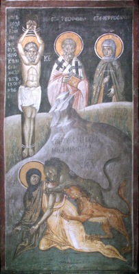 Святой мученик Пафнутий происходил из Египта и подвизался в пустыне. Во время гонения на христиан при Диоклитиане (284–305) правитель Ариан приказал привести к нему святого Пафнутия, но подвижник, не дожидаясь посланных за ним, сам явился к правителю, исповедал перед ним веру во Христа и был отдан на мучения. Два воина, истязавшие его, Дионисий и Каллимах, видя как сила Божия сохраняет мученика, уверовали в Христа Спасителя, за что были обезглавлены. Брошенный после мучений в темницу, святой Пафнутий обратил к вере 40 заключенных. Все они были сожжены. Через некоторое время святой Пафнутий был освобожден, и его радушно принял христианин Несторий. Он и все его семейство, после духовных наставлений, еще более укрепились в вере, за которую приняли мученическую кончину. Многих других христиан святой мученик утвердил в исповедании веры в Господа нашего Иисуса Христа, и все они приняли мученическую кончину: одни были изрублены мечами, другие – сожжены; всего 546 человек. Самого святого Пафнутия мучители бросили в реку с камнем на шее, но он чудесно приплыл с камнем к берегу. Наконец, святого мученика отправили к самому императору Диоклитиану и тот приказал распять его на финиковом дереве.