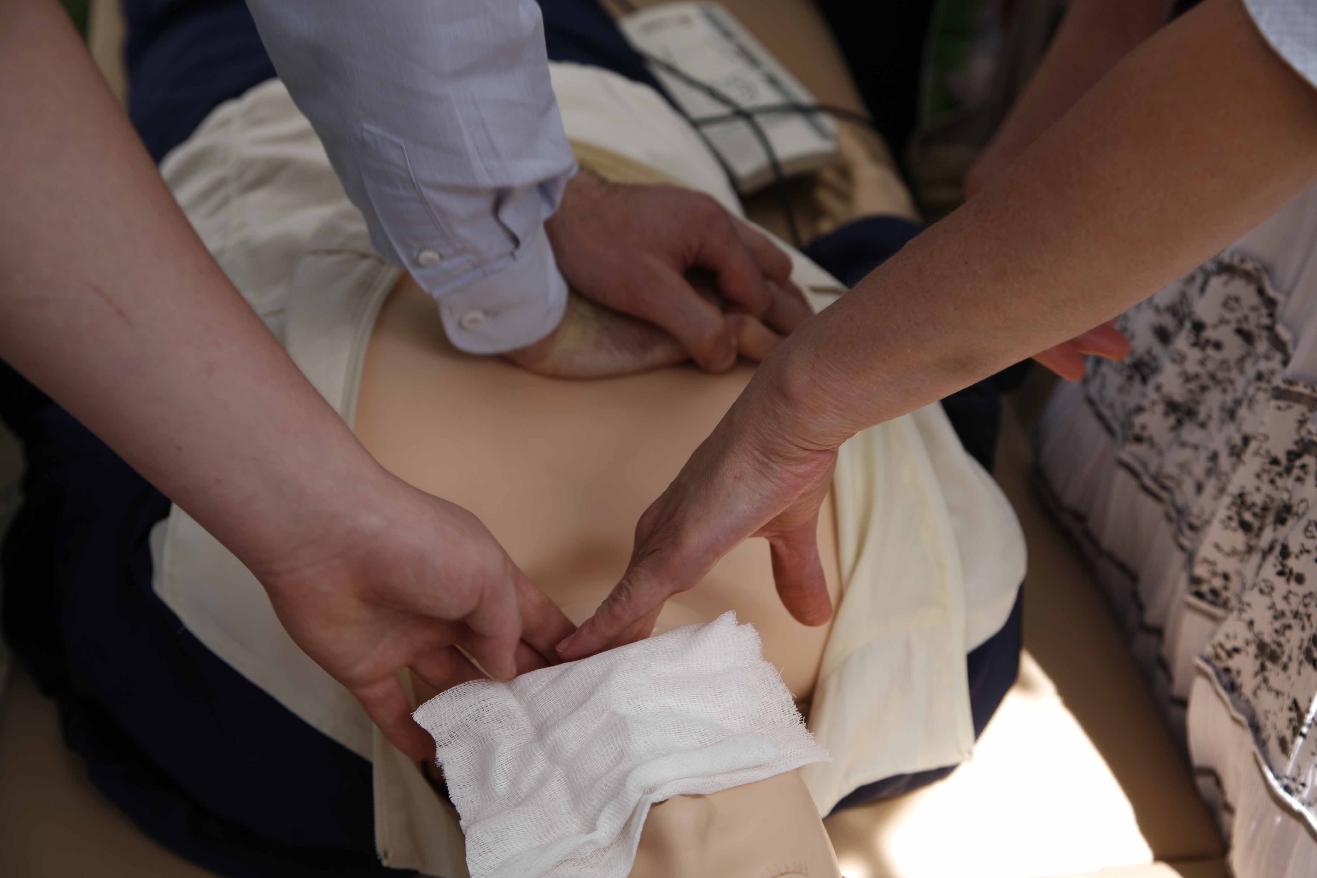 В саду обители выпускницы Свято-Димитриевского училища сестер милосердия провели мастер-классы по наложению повязок, показали, как останавливать кровотечение, объясняли, как помочь, если у человека сердечный приступ.