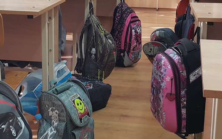 В коридорах в ожидании урока приходилось сидеть прямо на полу. Но полы были холодные, и мы сидели на рюкзаках, отчего те быстро теряли вид и пачкались.