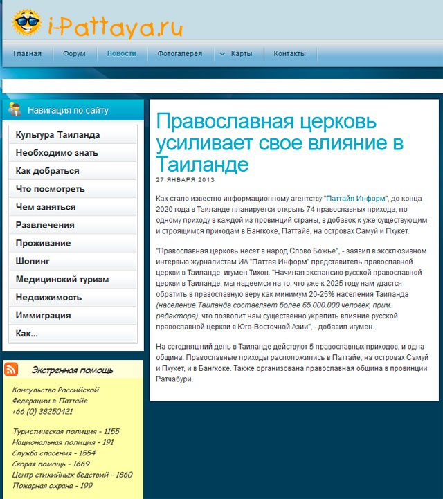 «Интервью» было опубликовано 27 января на сайте информагентства i-Pattaya.ru, его копию удалось сохранить РИА «Новый Регион».