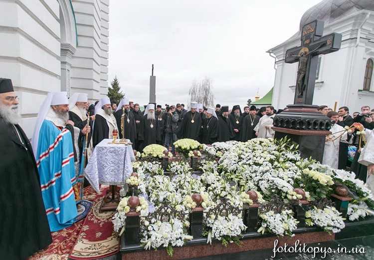 По окончании Литургии Предстоятель УПЦ вместе с Преосвященными владыками совершил панихиду на могиле Блаженнейшего Митрополита Владимира – у колокольни храма Рождества Богородицы, что на Дальних пещерах.
